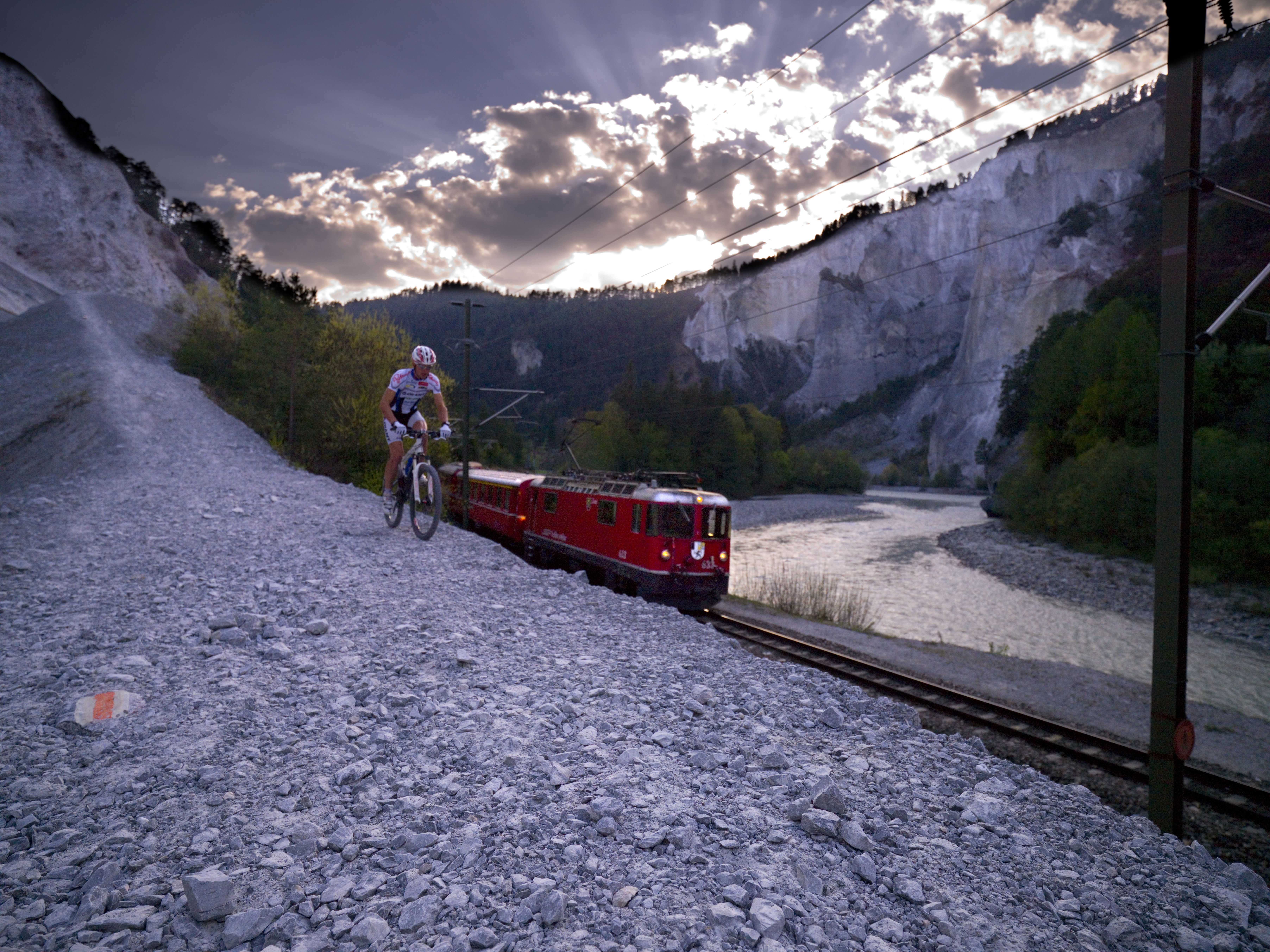 Biken entlang der Rheinschlucht.